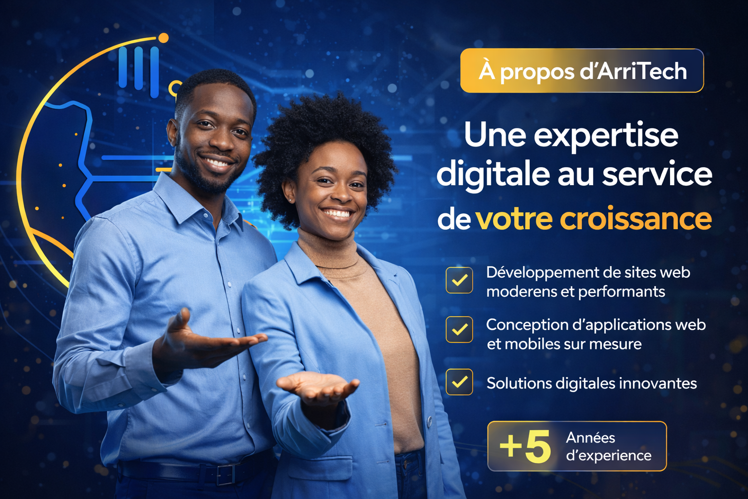 Chez ArriTech, nous concevons des solutions digitales sur mesure pour accompagner les entreprises, organisations et institutions dans leur croissance. Notre approche est centrée sur l’efficacité, la performance et l’adaptation aux réalités locales.